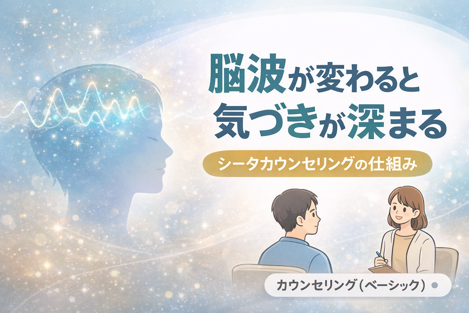 シータカウンセリングとは、クライエントが深くリラックスし、意識が内側に向かいやすい状態で行われるカウンセリングを指す。これは特別な誘導をしなくても、安心感のある場づくりや、評価されない関わり、ゆったりとした対話によって自然に起こることが多い。カウンセリング(ベーシック)で重視される「傾聴」や「受容」の姿勢は、結果的にクライエントの脳波を落ち着かせ、シータ波が出やすい状態をつくっていると考えられる。